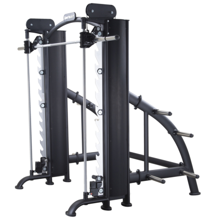 SportsArt PLS A983 Smith Machine er perfekt til at træne både overkroppen og underkroppen. Den er udstyret med en modvægtsstang og lodret bevægelsesområde, som sikrer en nem og effektiv styrketræning. Der er 8 opbevaringsmuligheder til vægtskiver for en hurtig justering af vægten under øvelserne. De justerbare hooks skaber sikkerhed for brugeren.