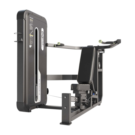 TITAN LIFE PRO Evost II Chest/Shoulder Press DUAL er en populær styrketræningsmaskine, som primært træner brugerens bryst- og skuldermuskulatur. Armenes startposition er justerbar i højde og vinkel og de stabile arme sikrer en naturlig og fremadrettet bevægelse, hvor armene kan rykkes individuelt, som giver balancerede muskler. Den vandrette bænkpres har to grebsmuligheder og kan justeres til forskellige vinkler. Skulderpres har to grebsmuligheder, enten i lodret eller vinklet position. Øvelserne foregår siddende i den vinklede position, hvilket minimerer kravene til stabilitet og tekniske færdigheder. Træningsmaskinen er designet i et minimalistisk og stilrent look, som gør den velegnet til enhver træningsfacilitet. Den er fremstillet af stabilt stål, der giver en stærk og langtidsholdbar træningsmaskine, som sikrer stabilitet og stor tilfredshed blandt brugerne.