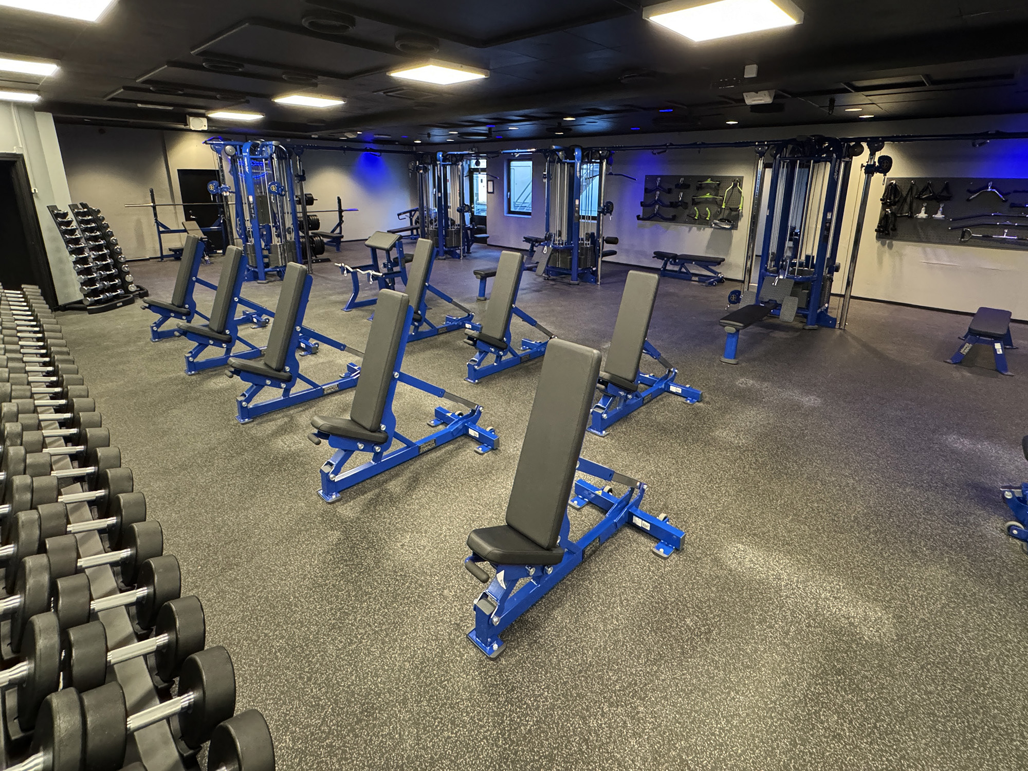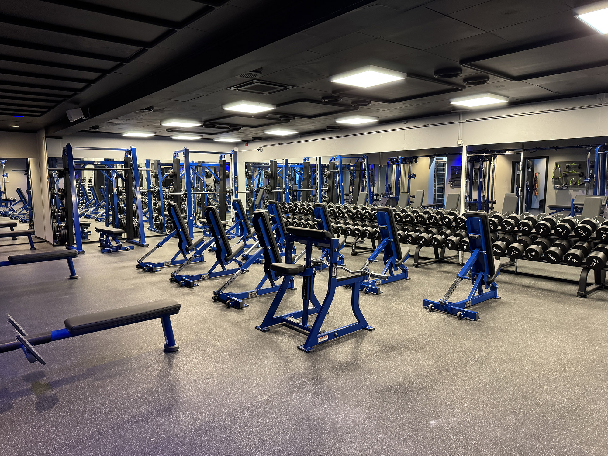 Power House København er indrettet med et omfattende udvalg af Hammer Strength stack- og plate-loaded maskiner i en elegant blå farve, der matcher centerets visuelle identitet perfekt. Herudover finder du premium funktionelt udstyr fra Torque og TITAN LIFE, der er kendt for deres holdbarhed og effektivitet. Med fokus på funktionel træning, styrketræning og cardio, er der skabt en atmosfære, hvor både nybegyndere og erfarne fitnessentusiaster kan få mest muligt ud af hver træning.