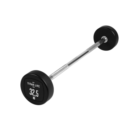 TITAN LIFE PRO Barbell er en vægtstang med fast vægt, som både kan bruges til at træne biceps og triceps. Vægtenheden er svejset fast til vægtstangen og beklædt med polyurethan. Den er egnet til træningscenteret, foreningsfitness mm. Fordelen med en vægtstang med fast vægt er, at der ikke skal bruges tid på udskiftning af vægtskiver, samt at vægtstørrelser har et spring på 5 kg. fra 10 – 45 kg.