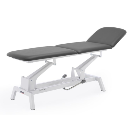 Gymna.GO T3x er et behandlingsleje med hydraulisk højdejustering. Hoveddelen er 46,5 cm lang og kan justeres fra -72 grader til +30 grader og bensektionen kan justeres fra vandret til 80 grader for at give patienten støtte i liggende og siddende positioner. Den er velegnet til en bred vifte af fysioterapi -og genoptræningsprocedurer. Stålrammerne på behandlingslejet er robotsvejset med en halvblank pulverlakering for ekstra stærk og holdbar beskyttelse.