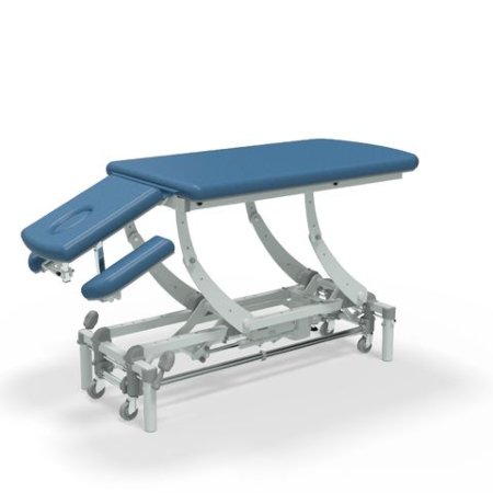 Seers Clinnova Therapy 4-delt er et behandlingsleje med elektrisk højdejustering med fodbøjle. Lejet er designet med en innovativ bagside, der gør vedligeholdelsen utrolig nem, da det er helt indkapslet. Hoveddelen er 52 cm lang med justerbare armstøtter og kan justeres fra -25 grader til +45 grader for at give patienten støtte i liggende og siddende positioner. Den er velegnet til en bred vifte af fysioterapi -og genoptræningsprocedurer og hoveddelen er udstyret med et næsehul og prop, som standard.