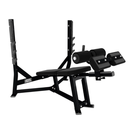 Hammer Strength Olympic Decline Bench er i høj kvalitet med en lang holdbarhed. Det er en skrå bænk til træning af de nedre brystmuskler. Stativet har hvilepositioner til vægtstangen, som skaber sikkerhed for brugeren under øvelserne. Perfekt træningsbænk til brugeren, som ønsker at løfte ekstra tungt. Her kan brugeren med fordel selv justere vægten ved at påføre eller fjerne vægtskiver.